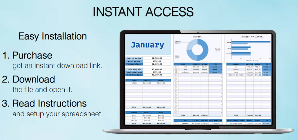 - An instructions sheet that explains every section of the Spreadsheet in great detail